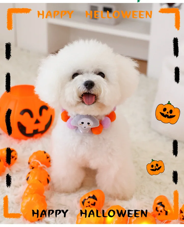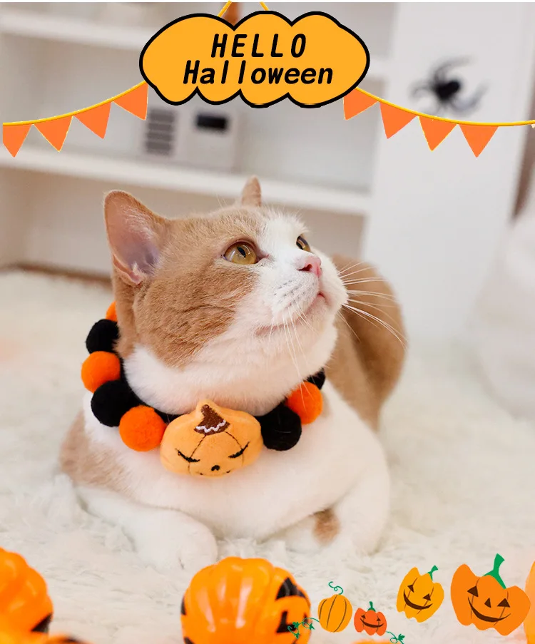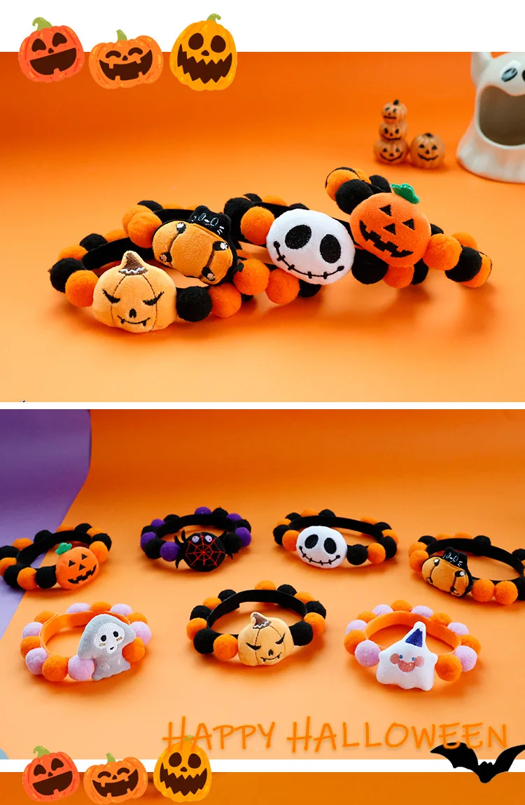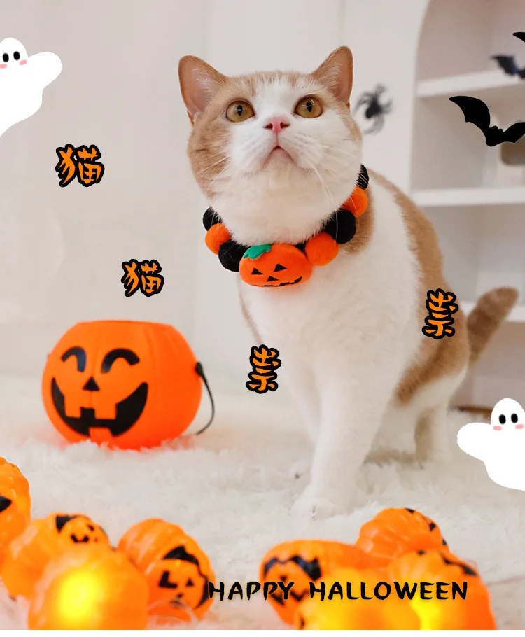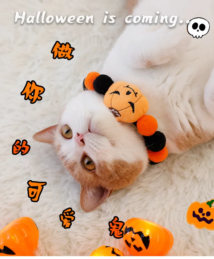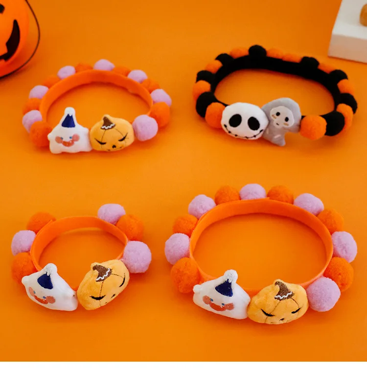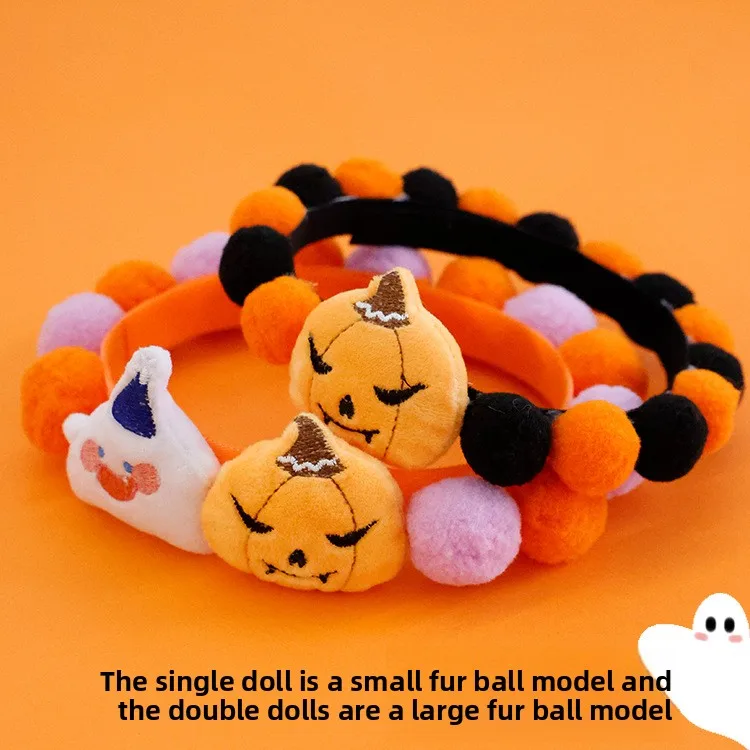 Cat Plush Ball Collar Cute with Doll Pumpkin Spider Small Dog Necklace Beard Corgi Pet Halloween Christmas Neck Ring Jewelry