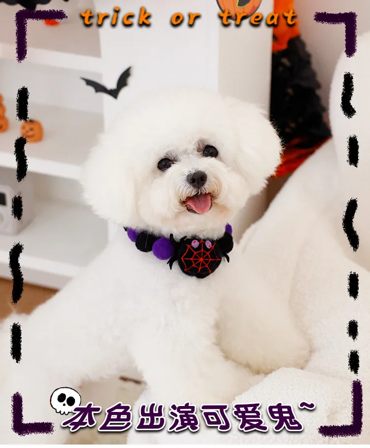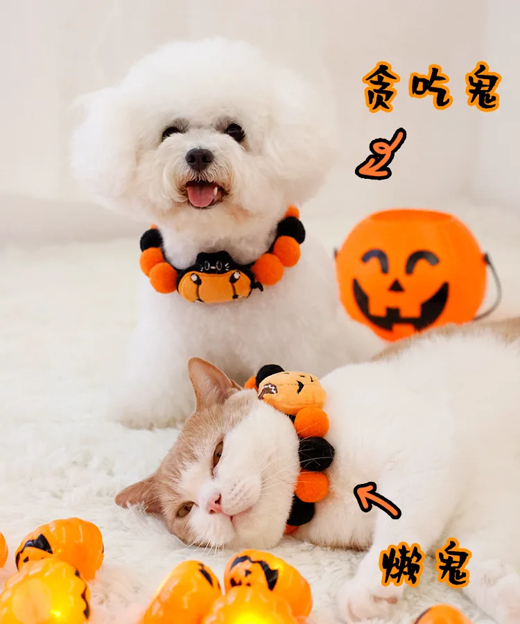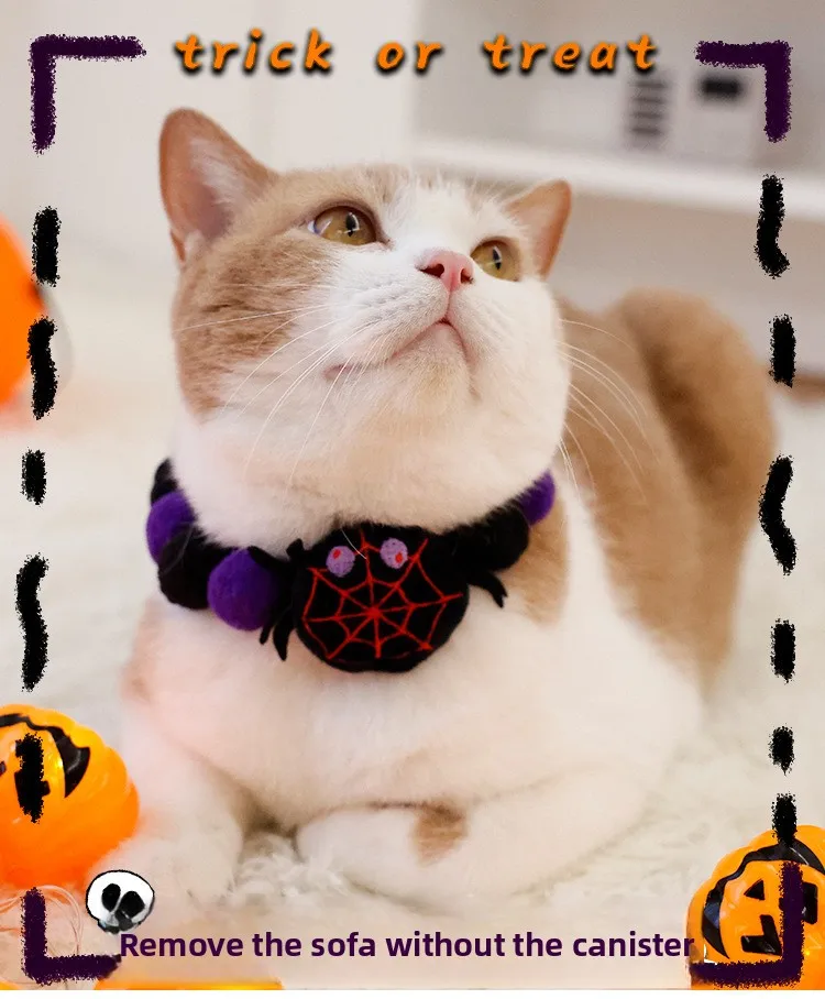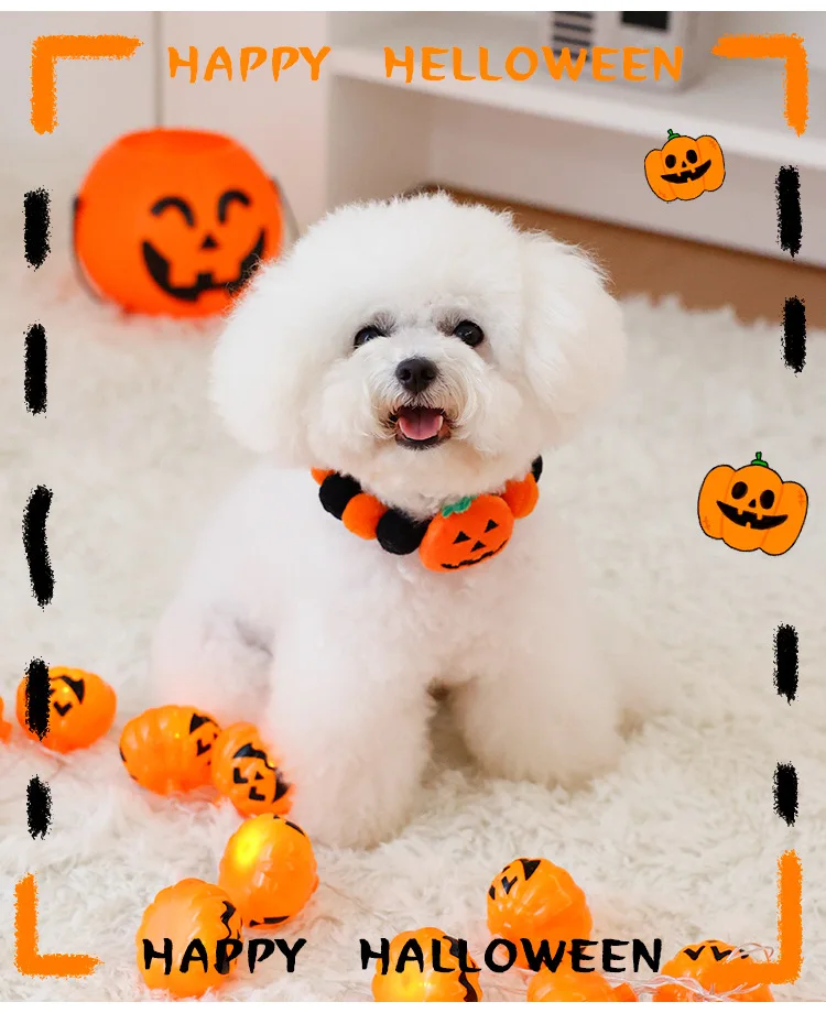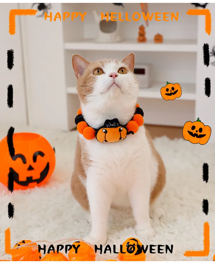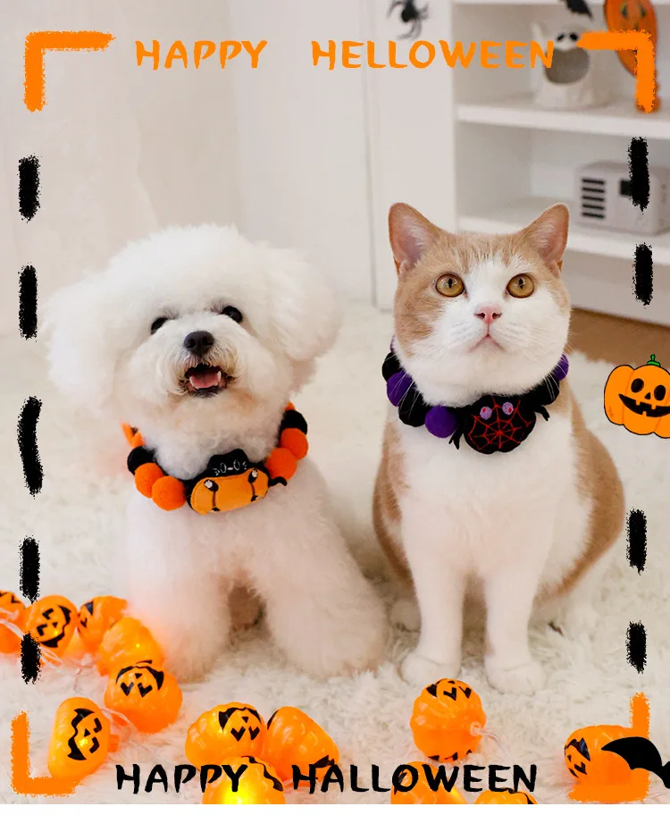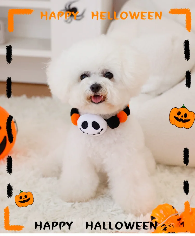 Cat Plush Ball Collar Cute with Doll Pumpkin Spider Small Dog Necklace Beard Corgi Pet Halloween Christmas Neck Ring Jewelry